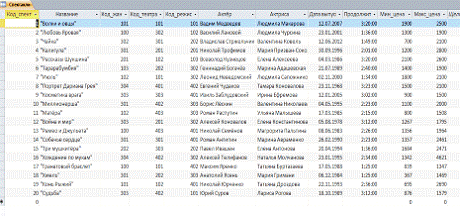 вспомогательные и одну основную таблицу. В таблице «Спектакли» содержится