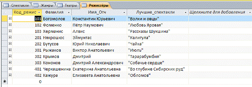 Режиссеры [Код_режис, Фамилия, Имя_Отч, Лучшие_спектакли]