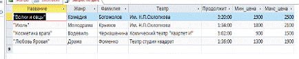 информацию с таблицы «Спектакли», так и о названиях театра, жанрах определённых