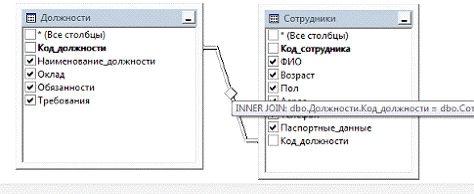 Запрос "Отдел Кадров" связывает таблицы: Должности,