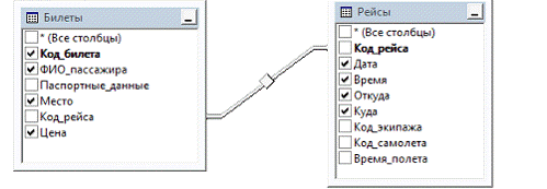 Запрос "Билеты" связывает таблицы: Билеты и Рейсы.