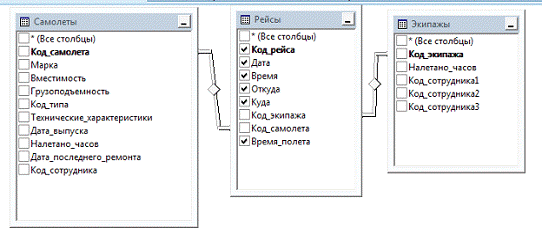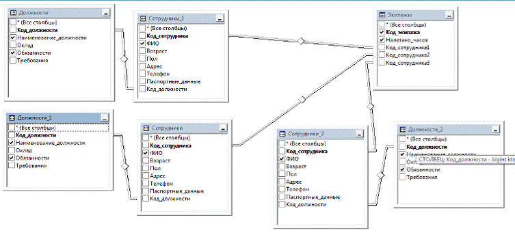 Запрос "Экипажи" связывает таблицы: Сотрудники и