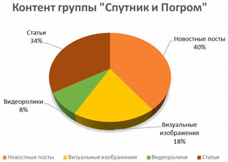 (новостные посты, визуальные изображения, видеоматериалы, статьи) были