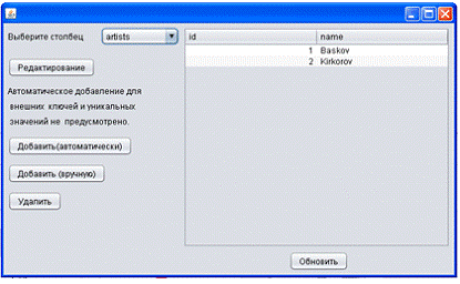 альбомов. Наличие записи в данной таблице означает, что исполнитель является