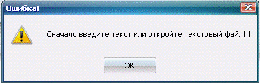 об ошибке;:='Сначало введите текст или откройте текстовый файл!!!'#13#10;