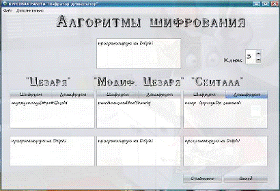 «Модифицированного Цезаря» и алгоритм «Скитала».