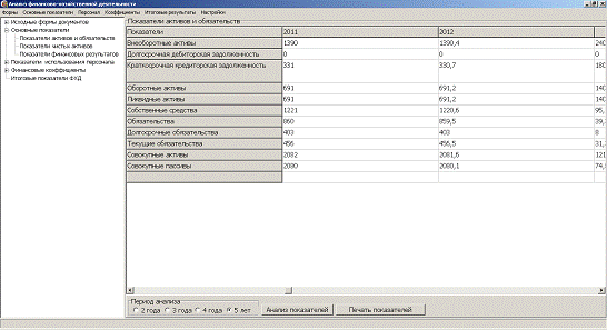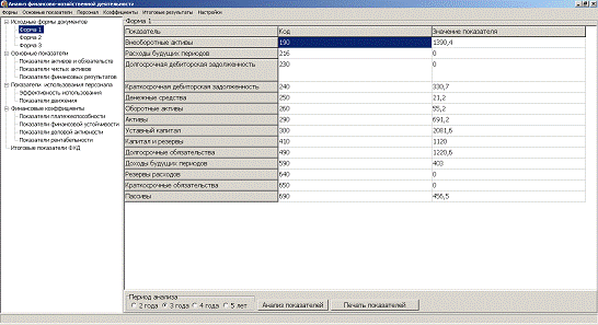 разработки приложения автоматизации анализа результатов финансово-хозяйственной