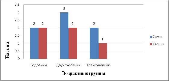 показатель (3 балла) имели самки в двухлетнем возрасте (рисунок 9).