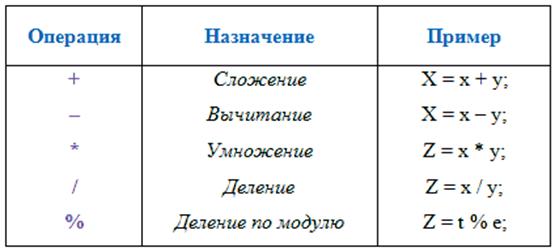 присваивания. Данная операция является бинарной, имеет два операнда. Например,