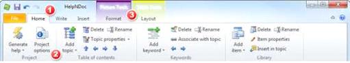 Основу интерфейса программы HelpNDoc составляет лента, на
