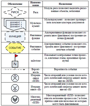 Описание ячеек элемента блок-схемы представлено на