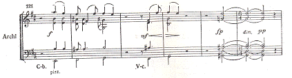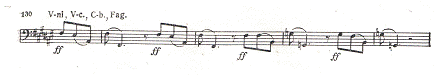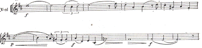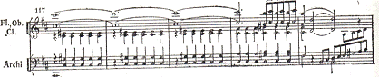 В следующем фрагменте у струнных нисходящий ход на квинту превращается в