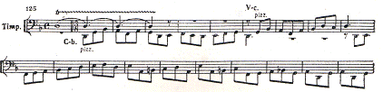 большого барабана и тарелок, остаются одни лишь литавры. Арфа, по его мнению,