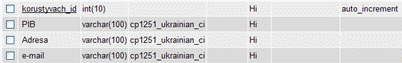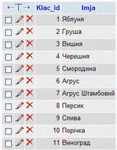 Створена база даних містить інформацію про різного роду
