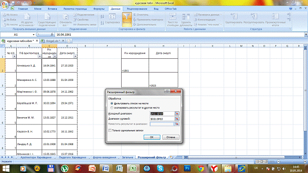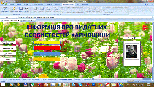 системи «Видатні особистості Харківщини» засобами табличного процесора.