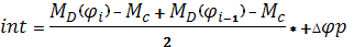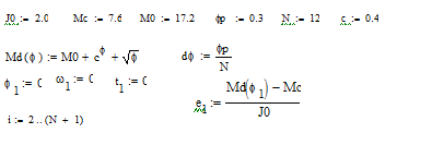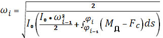 (M(fi[i])-Mc+M(fi[i-1])-Mc)/2*dfi;[i]:= sqrt(2/Jo*(Jo*sqr(w[i-1])/2+int));:=