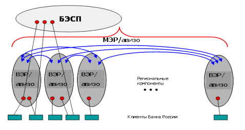 Система МЭР обеспечивает взаимодействие различных региональных компонент на децентрализованной основе («каждый с каждым»).
