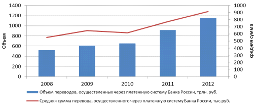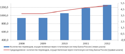 На долю этих клиентов в 2012 году приходилось 15,1% от общего количества и 8,2% от общего объема осуществленных через платежную систему Банка России переводов денежных средств.