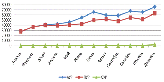 На рис. 6 показана динамика колличества и объема