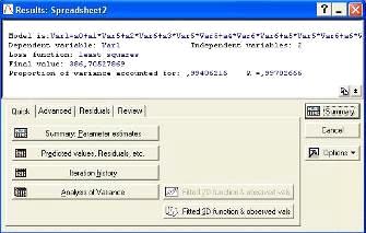 нелинейный регрессионный анализ аппроксимируемых функций по данным в
