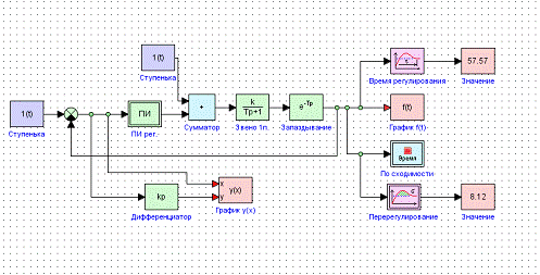 управления, состоящей из ПИ-регулятора и инерционного объекта 1-го порядка с