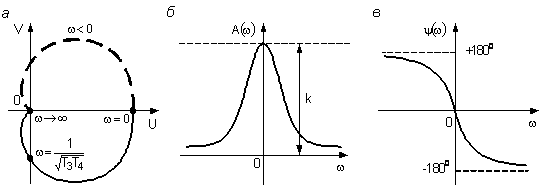 Рисунок 8 - АФЧХ (а), АЧХ (б) и ФЧХ (в)