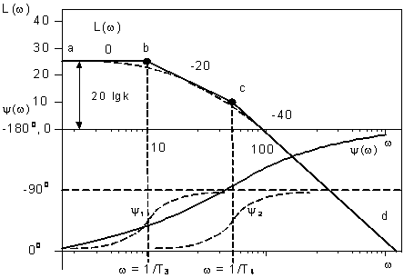 представляет собой асимптотическую ЛАХ. Действительная ЛАХ показана пунктиром.