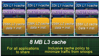 її обсяг зменшився до 256 Кб, а КЕШ-пам'ять третього рівня стала загальною для