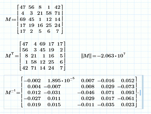 символьных вычислений Matrix>Transpose. Обратная матрица. Поиск обратной