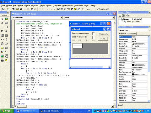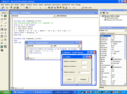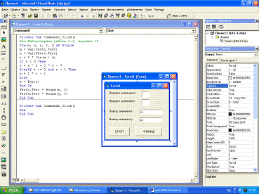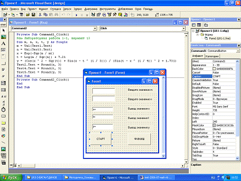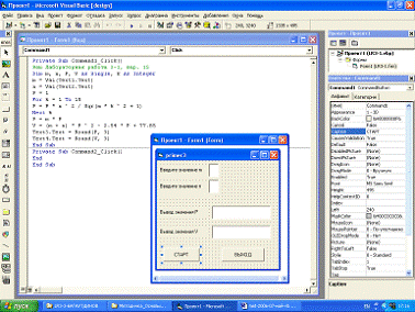 для Command2 - свойство Caption = ‘Вычислить» и для Command3 - свойство Caption = ‘Выход». Для