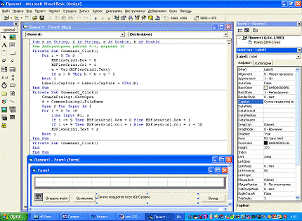 = ‘Открыть файл», для Command2 - свойство Caption = ‘Найти Zi,j‘ и для Command3 - свойство Caption = ‘Выход».