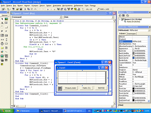 табличные значения x, и y. Используем для этой цели элемент MSFlexGrid1. Во-вторых, необходим