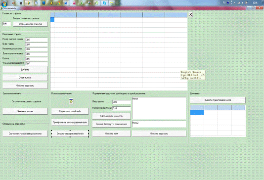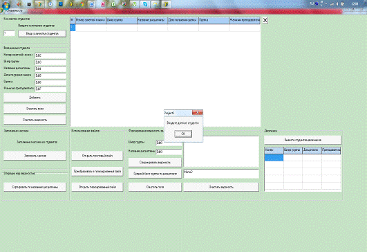 получения оценки, Оценка, Фамилия преподавателя При вводе данных в строковые