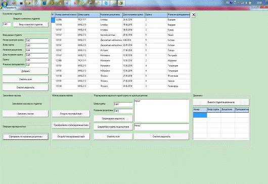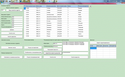 группы по определенной дисциплине (Шифр группы и Название дисциплины вводятся).