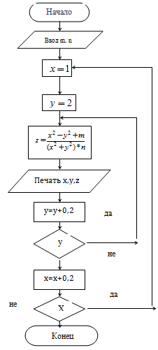 Блок-схема циклического вычислительного процесса с применением двумерного