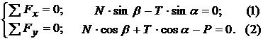 плоскої системи збіжних сил складаємо два рівняння рівноваги в проекціях на осі