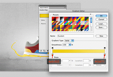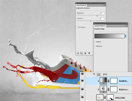 корректирующий слой, чтобы обесцветить краску и карту градиента корректирующего