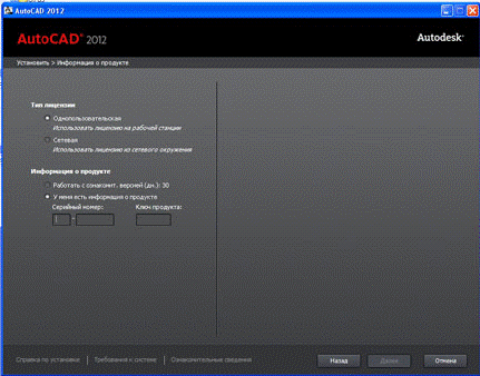 Порядок действий по установке AutoCAD 2012