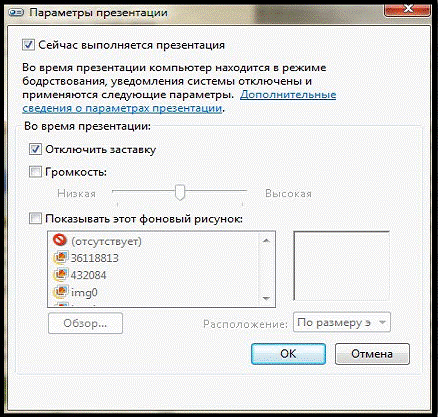 включати режим презентації. Коли комп'ютер перебуває в цьому режимі,