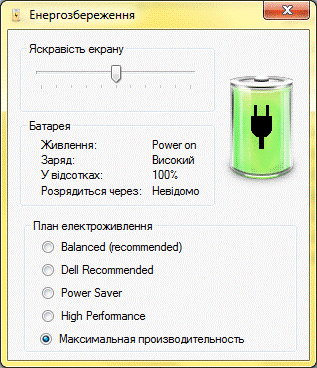 портативного комп’ютера, тобто зменшити яскравість екрану та вибрати метод