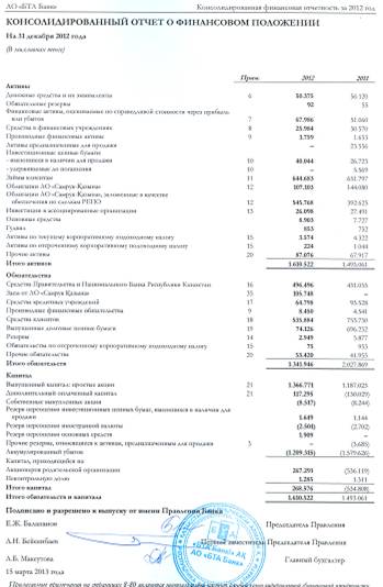 ) осуществить оценку деятельности АО "БТА банка" за 2010-2012