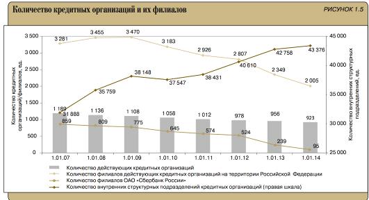 внутренних структурных подразделений кредитных организаций увеличилось на 618 единиц и на 01.01.2014 составило 43 376 (на