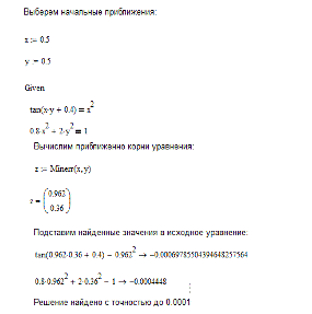 Задание по MathCAD №3 «Решение систем нелинейных уравнений»