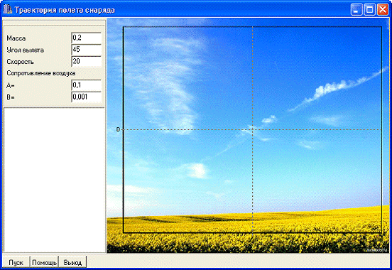 моделирования траектории полета снаряда.