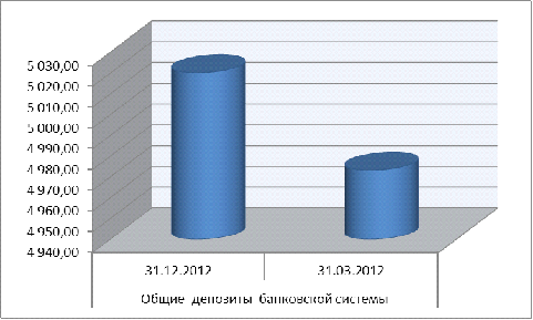 На конец рассматриваемого периода общий остаток депозитов составил 4,9