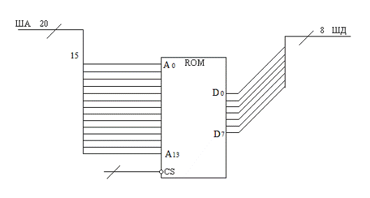 образом, схема ПЗУ имеет 14 адресных входов 16К = 214, восемь вход/