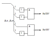 состоянию А19, А18 - 01 работает ОЗУ. С помощью простейшей логики можно