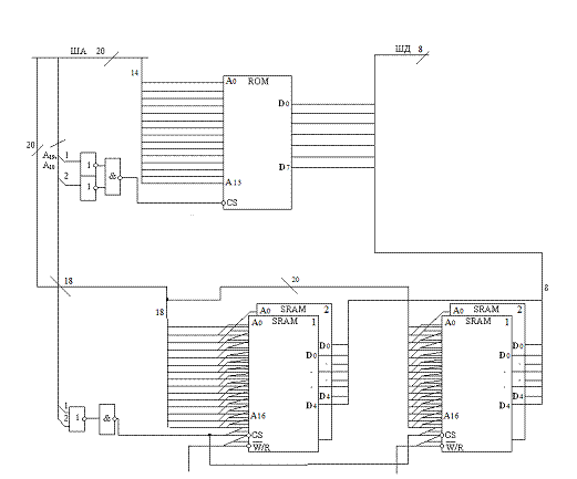ОЗУ и ПЗУ. ПЗУ имеет емкость 16К*8 (рис.1), а ОЗУ - 64К*4 (рис.2). Таким
