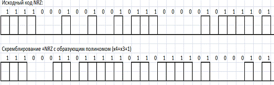 последовательности из кода NRZ в скремблированную последовательность