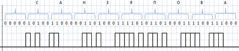последовательности символов кодом МТК-2 и построим временную диаграмму.